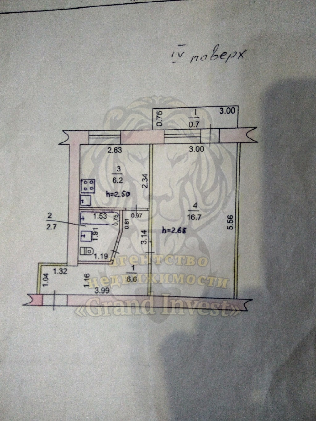 Общая площадь жилья составляет 32 м.кв. Комната площадью 17 м.кв. Кухня площадью 6.2 м.кв.