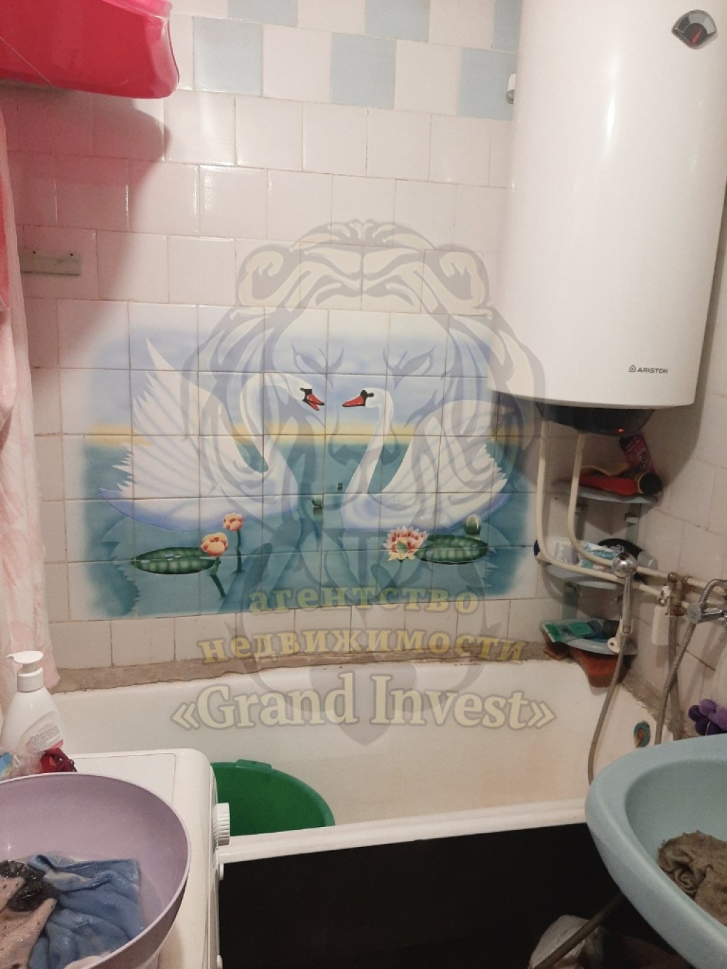 Санузел раздельный в плитке, есть бойлер.