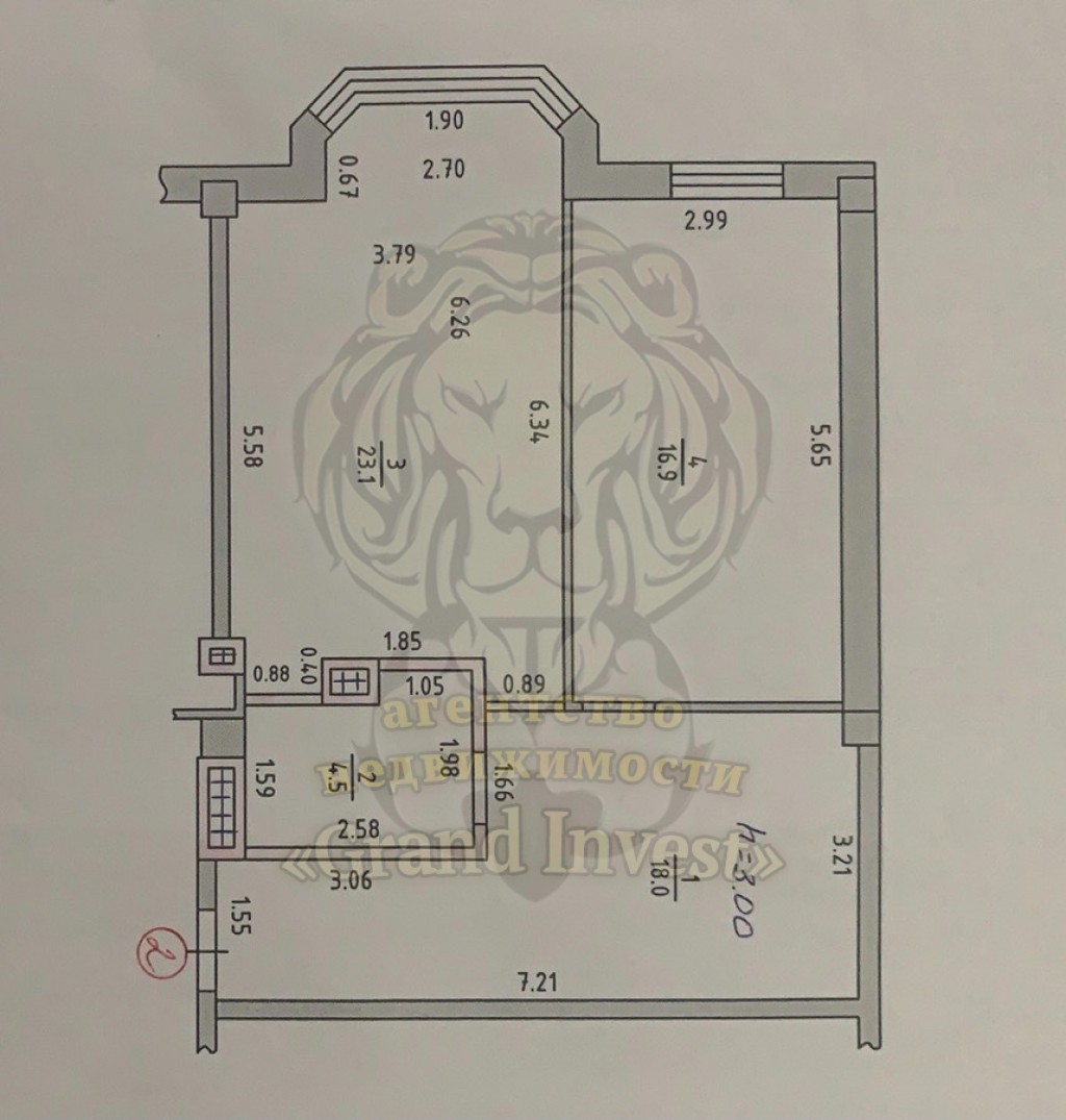 Площадь: Комната - 17 кв.м. Кухня-студия - 23 кв.м. Коридор 18 кв.м. Санузел - 8кв.м. Есть место под гардеробную комнату.