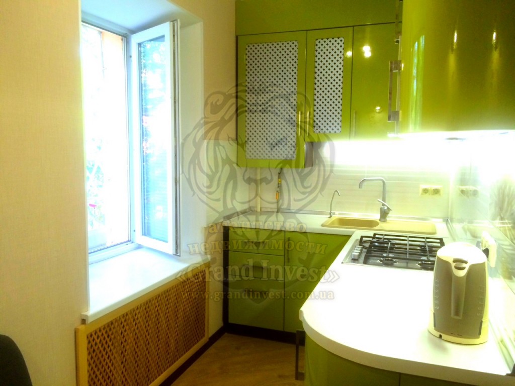 Установлены хорошие межкомнатные двери, все выдержано в одном стиле. Кухня по планировке угловая, в них удобно размещена кухонная секция сочного, приятного зеленого цвета с светлой плиткой-фартуком . Санузел совмещен, в светлом новом кафеле с акцентом цветом-фуксия, установлена экономная душевая кабина.