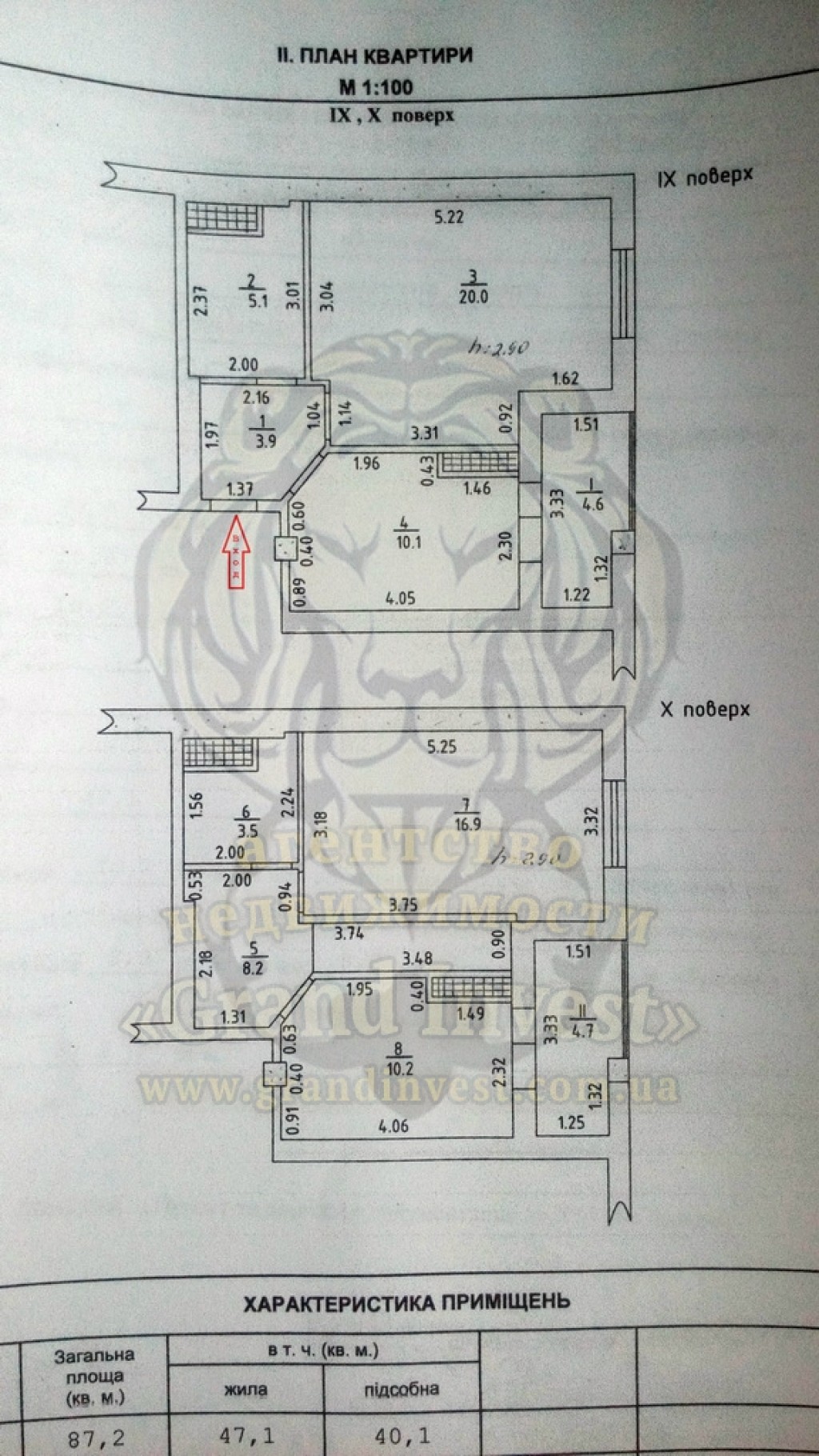 Общая площадь: 87