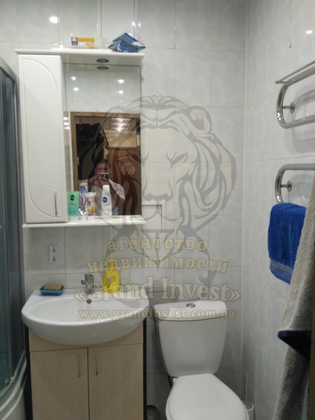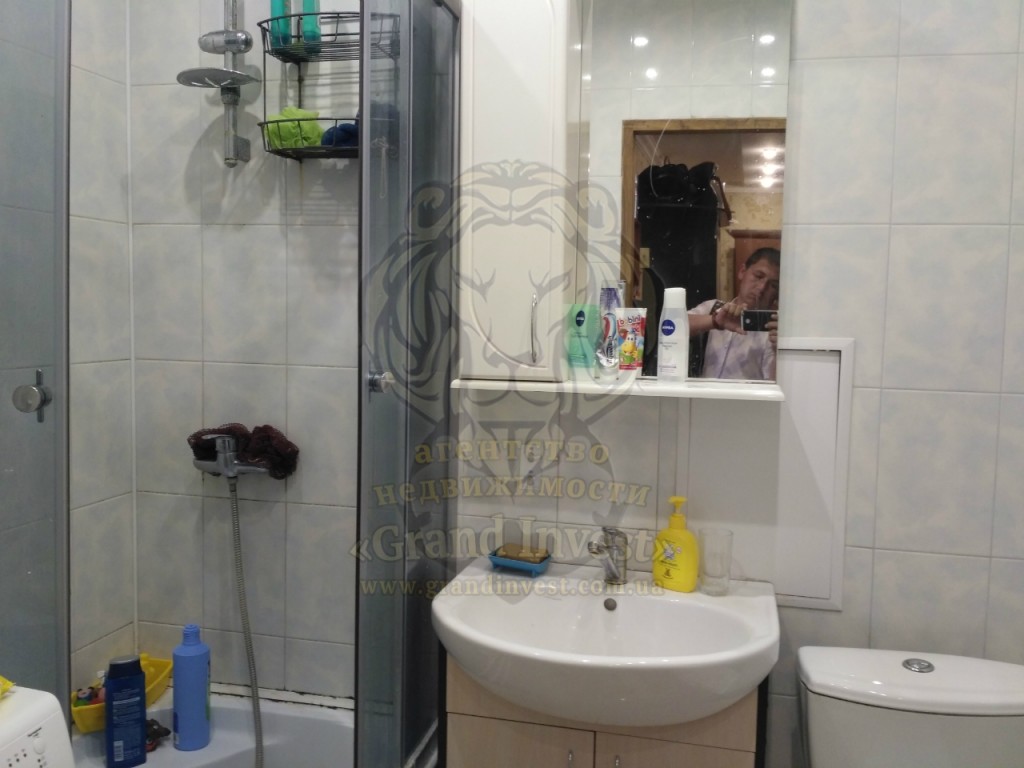 Санузел совмещён, в кафеле. Установлена душевая кабинка.